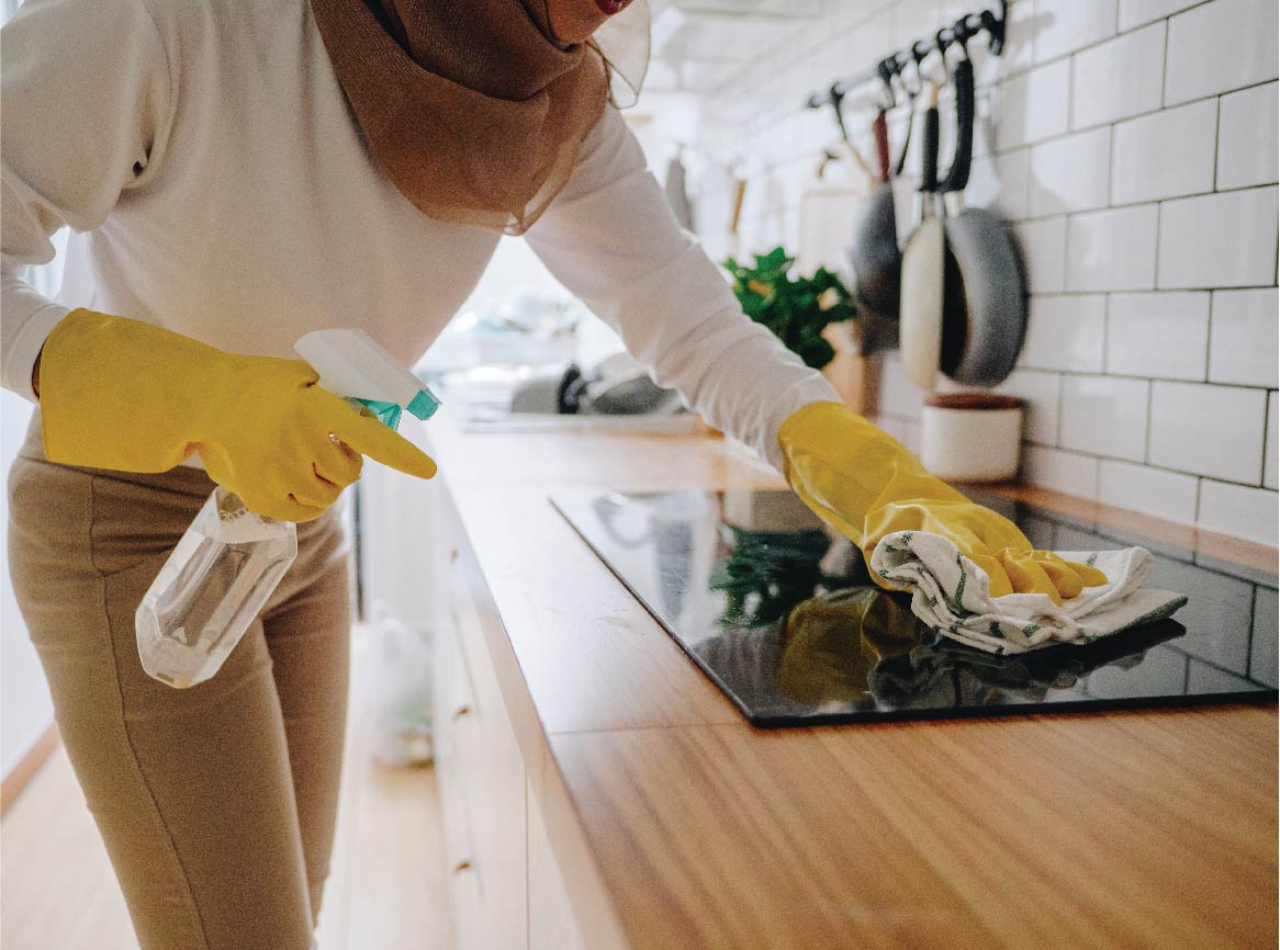 Choose just one surface to reset each night—your dining table, stove or sink. Clear it, wipe