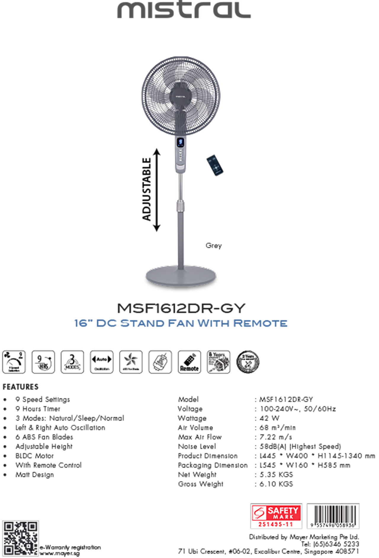 MISTRAL 16” DC REMOTE STAND FAN MSF1612DR-GY