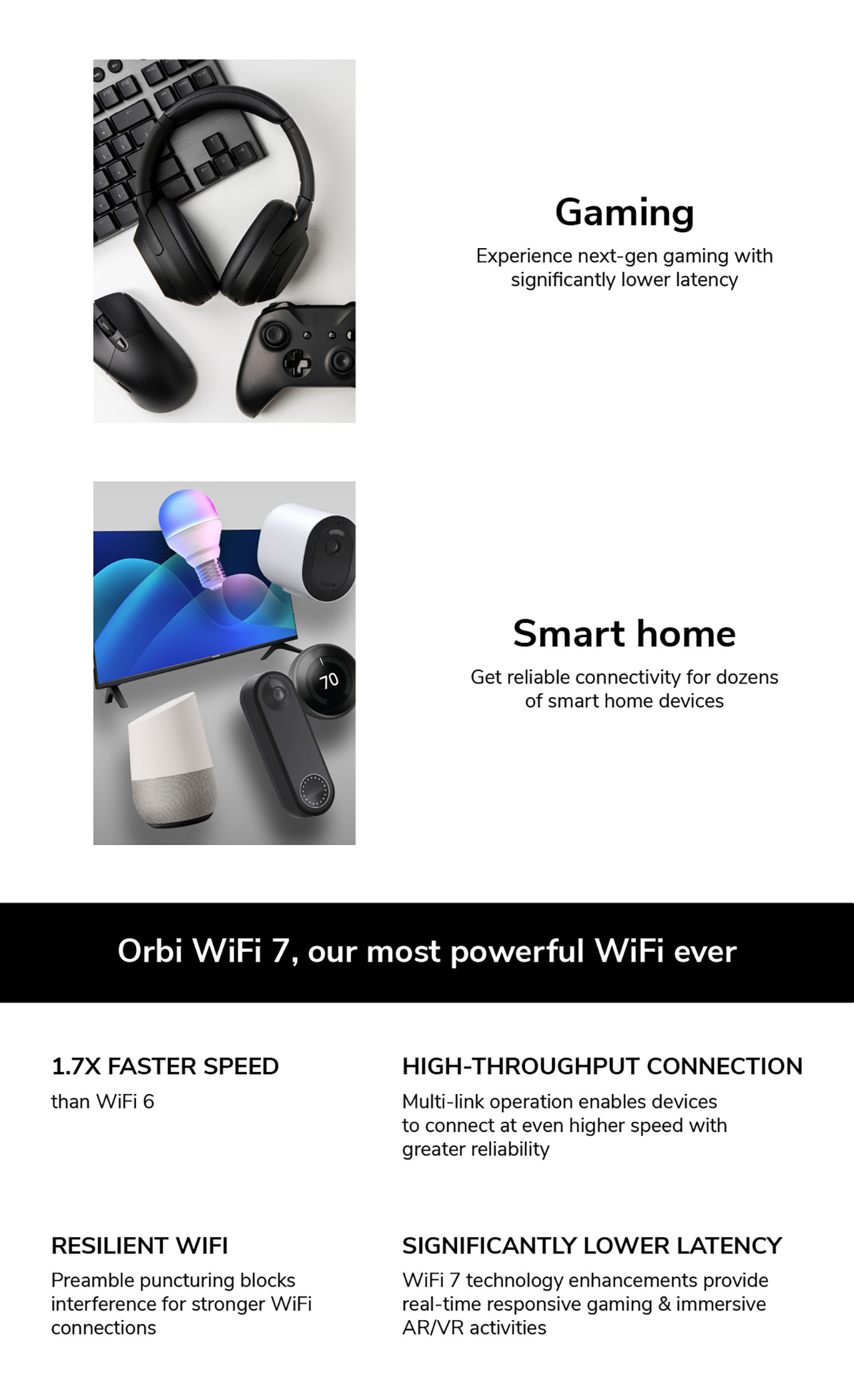 Orbi powers 4K streaming, video calls, and gaming simultaneously, so everyone in your household can enjoy uninterrupted performance