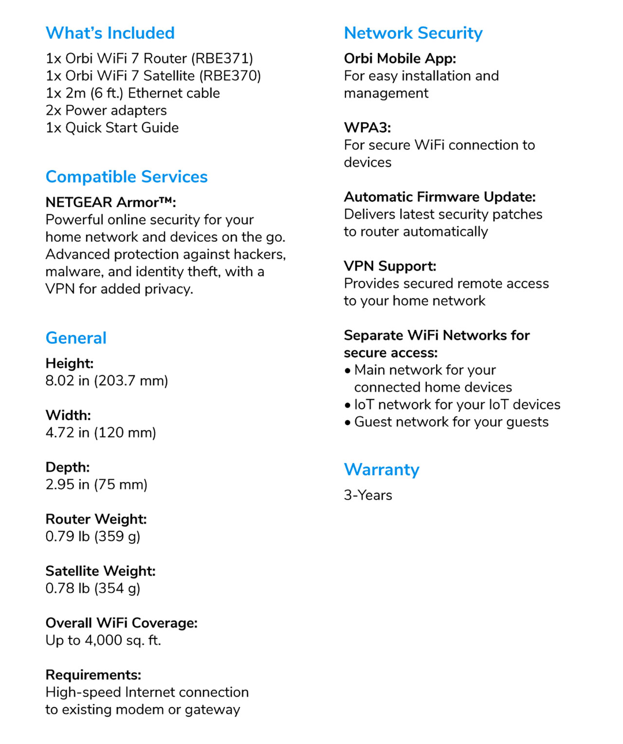 NETGEAR ORBI 370 BE5000 DUAL BAND WIFI 7 MESH (2PK) RBE372-100APS