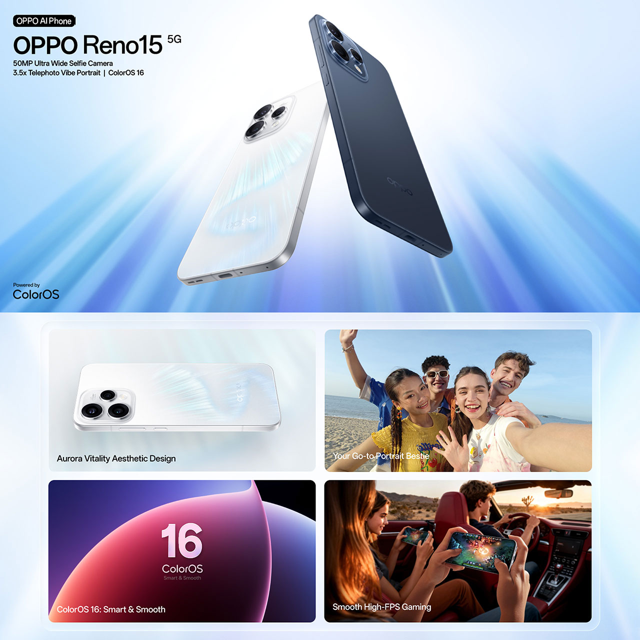 OPPO RENO 15 PHONE 6.59" 5G RENO 15-5G-12+512GB-AURORA WHITE