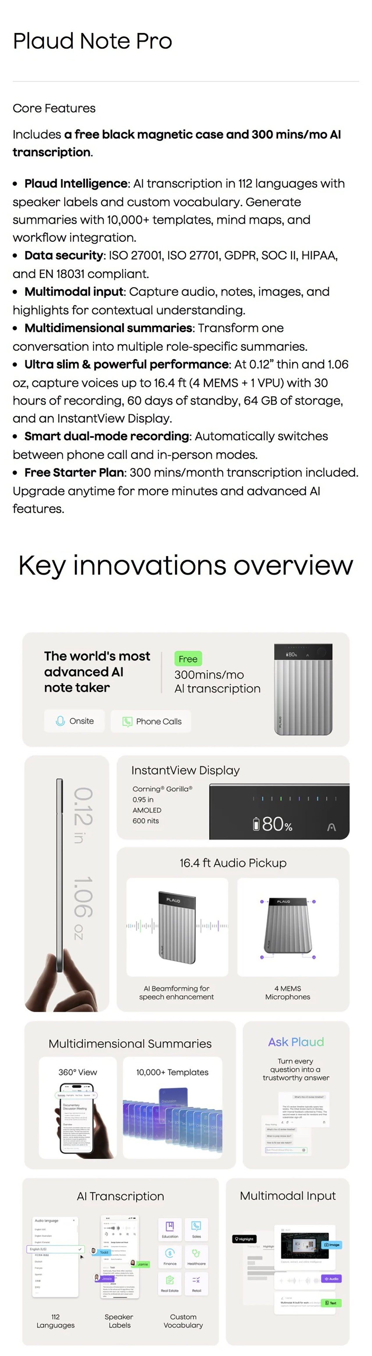PLAUD NOTE PRO AI NOTE TAKER - BLACK CDTBK1GXXXXX01