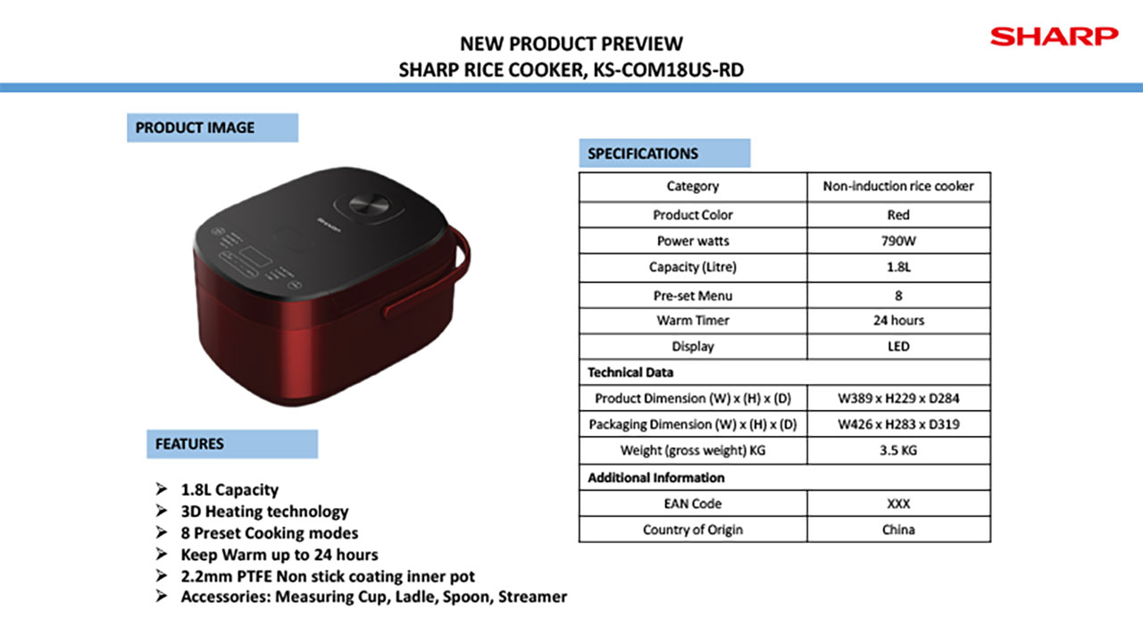 SHARP RICE COOKER 1.8L KS-COM18US-RD
