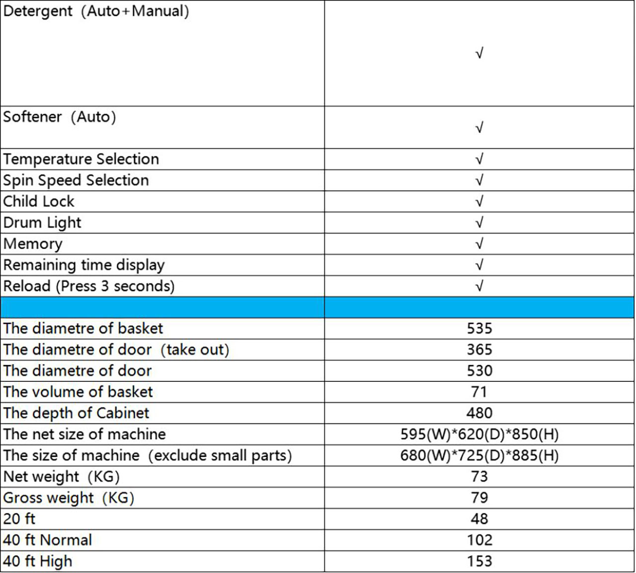 - Dimensions (W x H x D): 59.5 x 85.0 x 62.0 cm