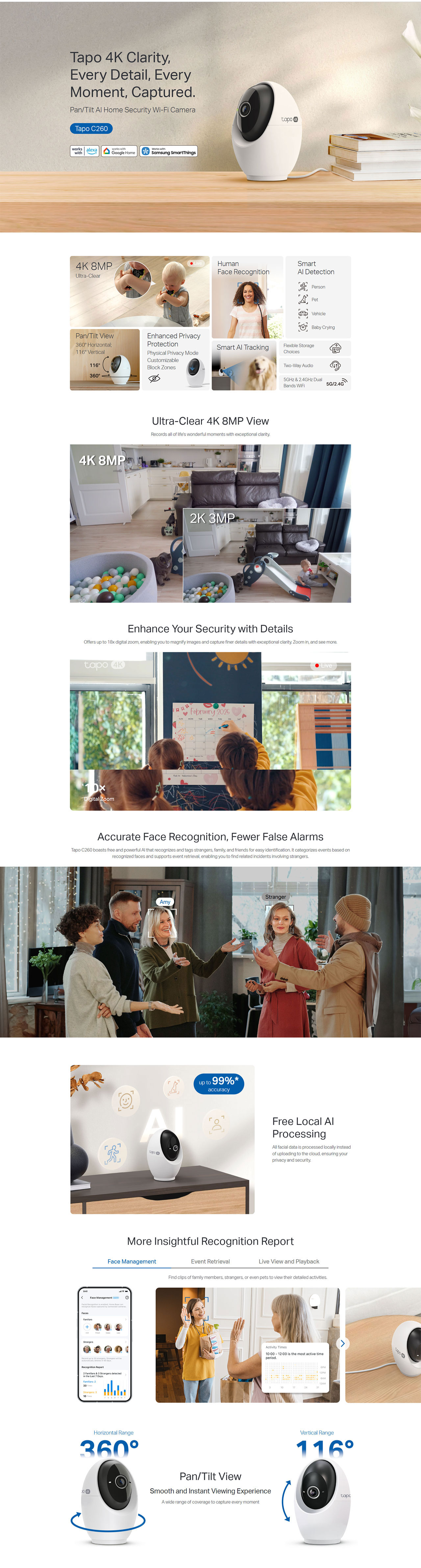 TP-LINK 4K PTAN/TILT HOME SECURITY WI-FI CAMERA TAPO C260