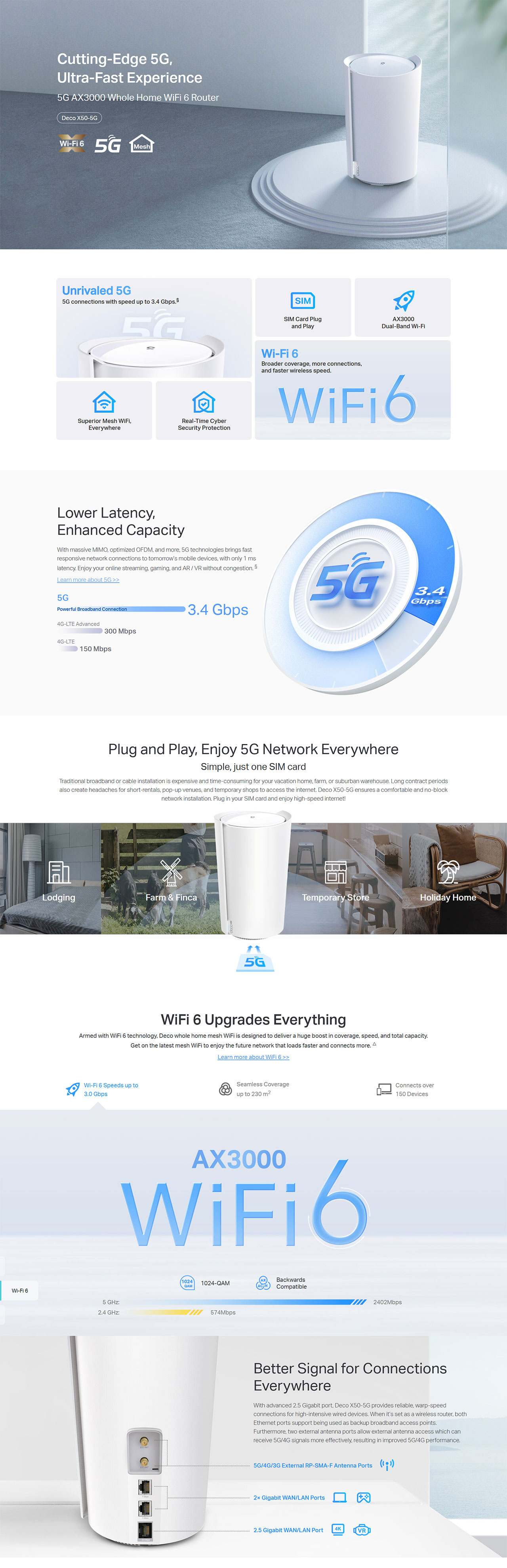- Plug & Play: Enjoy Deco 5G right after inserting a SIM card
