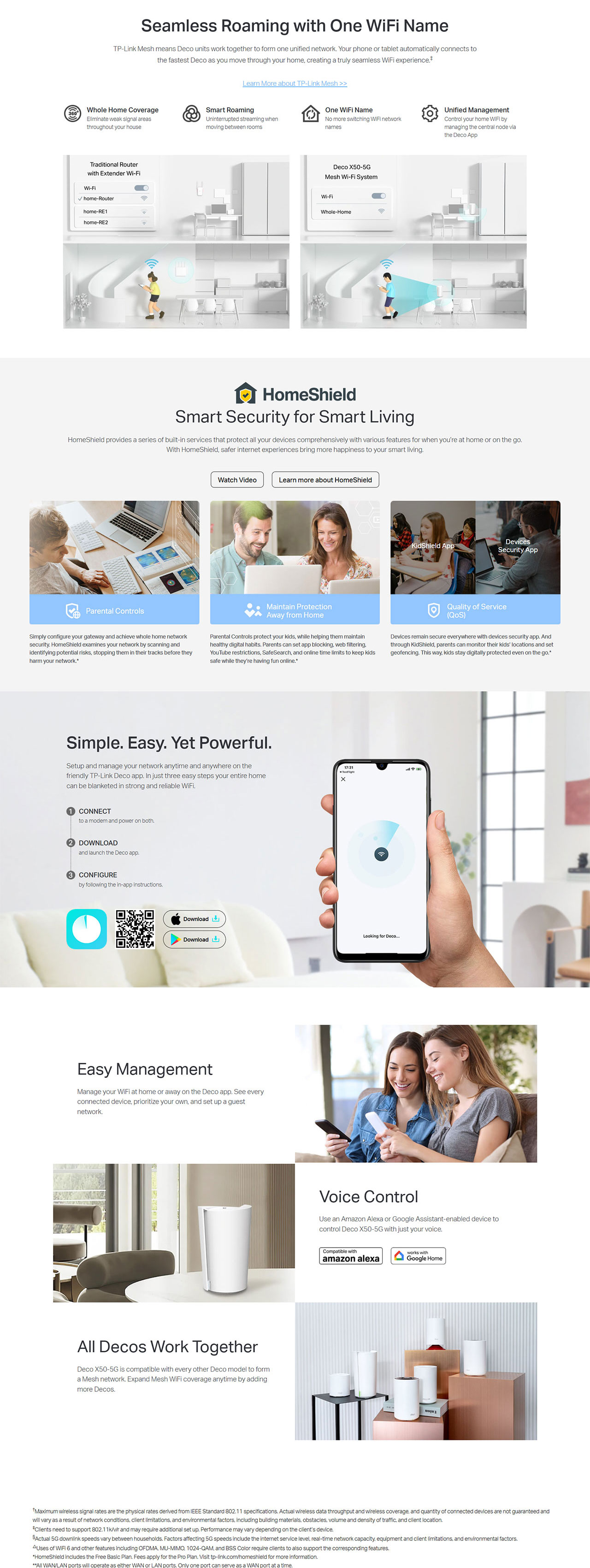- Mesh Network: Deco mesh technology ensures strong Wi-Fi signals everywhere