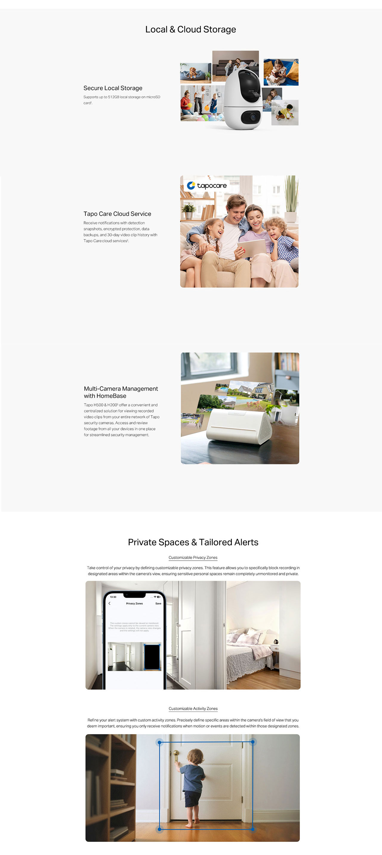 - Secure Local or Cloud Storage - Save footage continuously on up to a 512 GB microSD card (not included) or subscribe to Tapo Care for cloud storage which saves 30-day video.