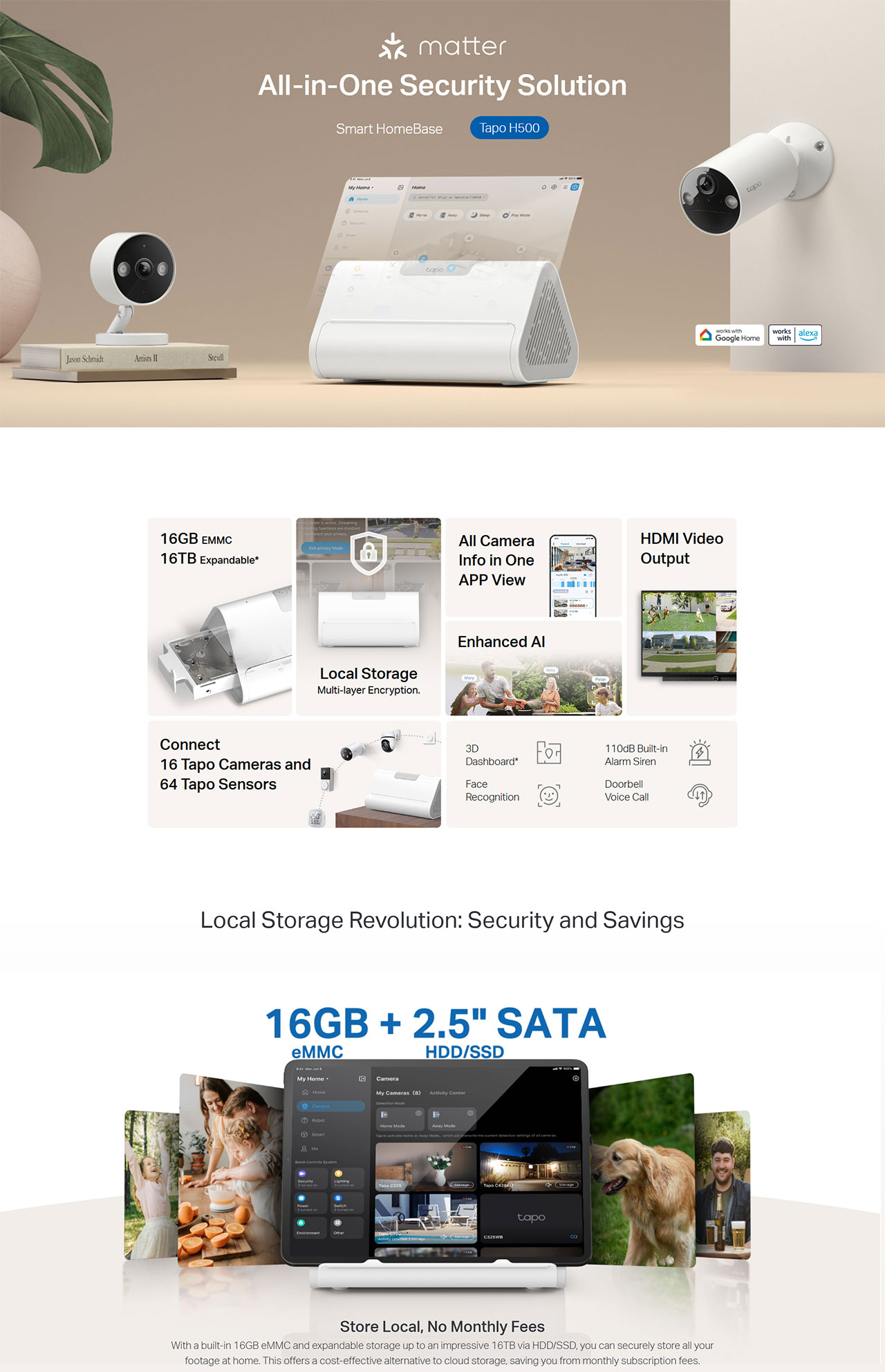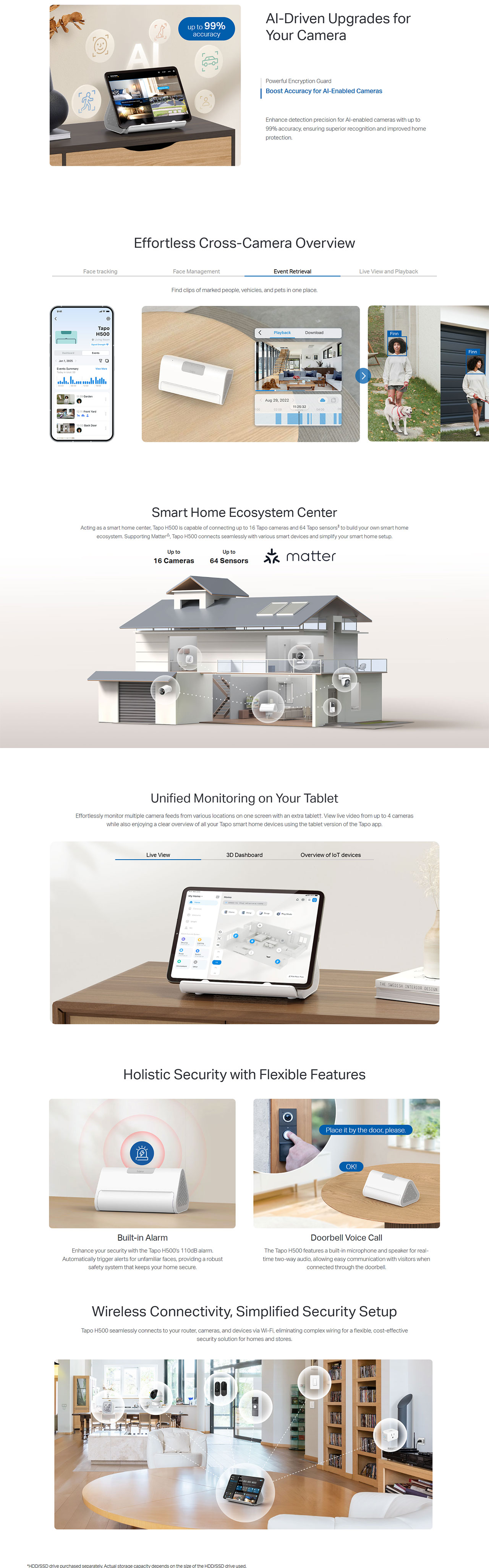 - Smart Home Ecosystem Center: Capable of connecting up to 16 cameras and 64 sensors to build your smart home ecosystem.