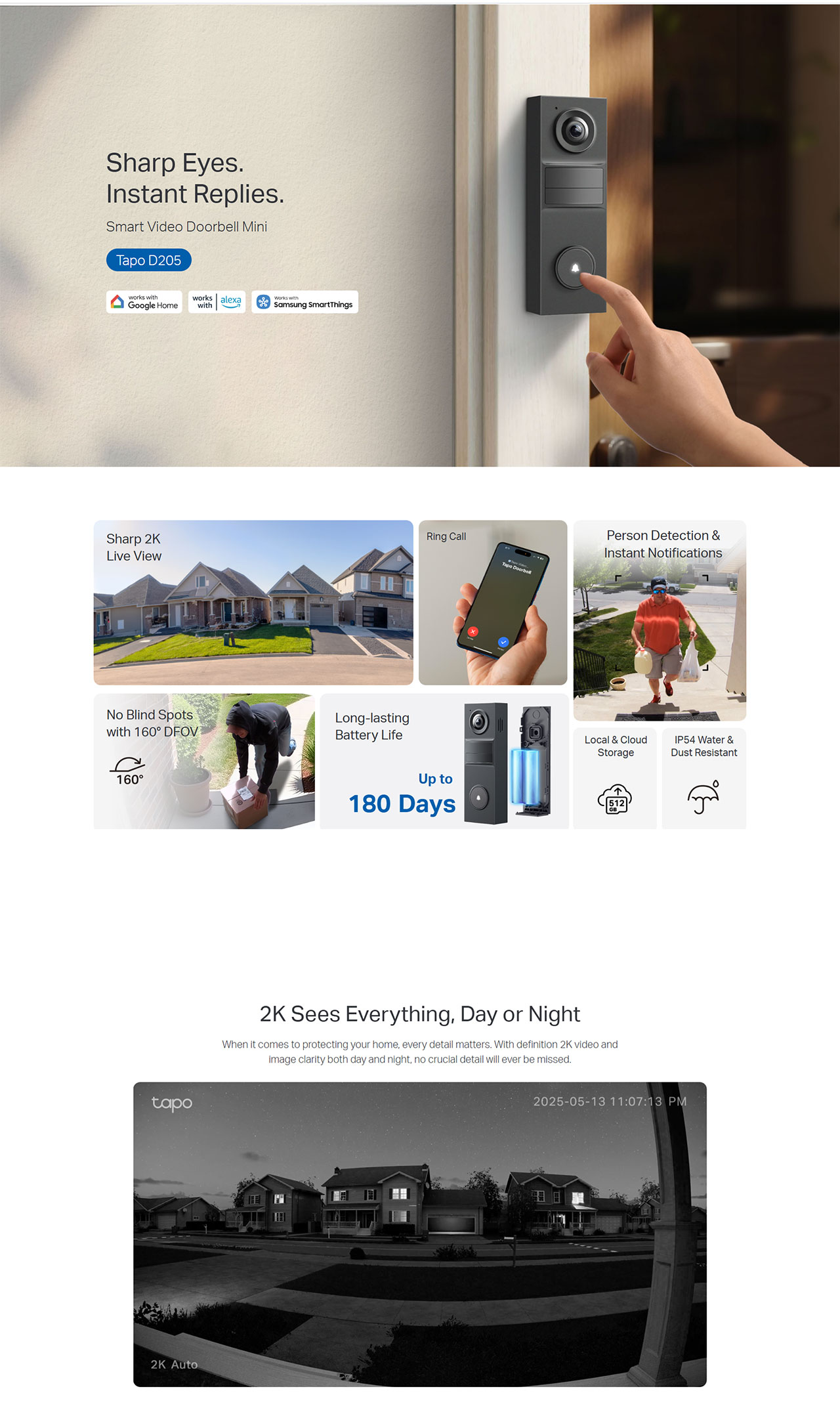 - Local and Cloud Storage: Supports microSD card (up to 512GB) and Tapo Care cloud services.