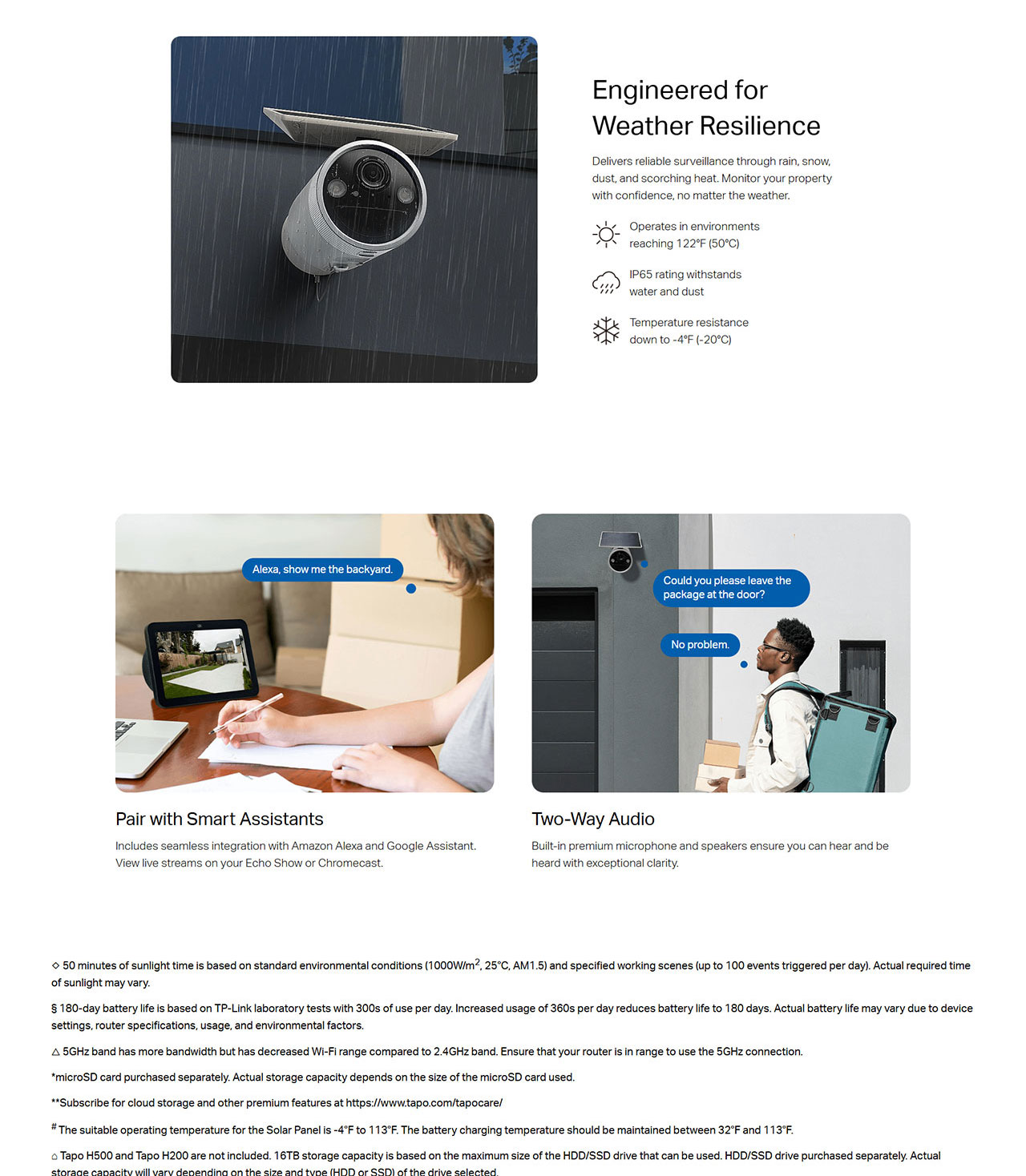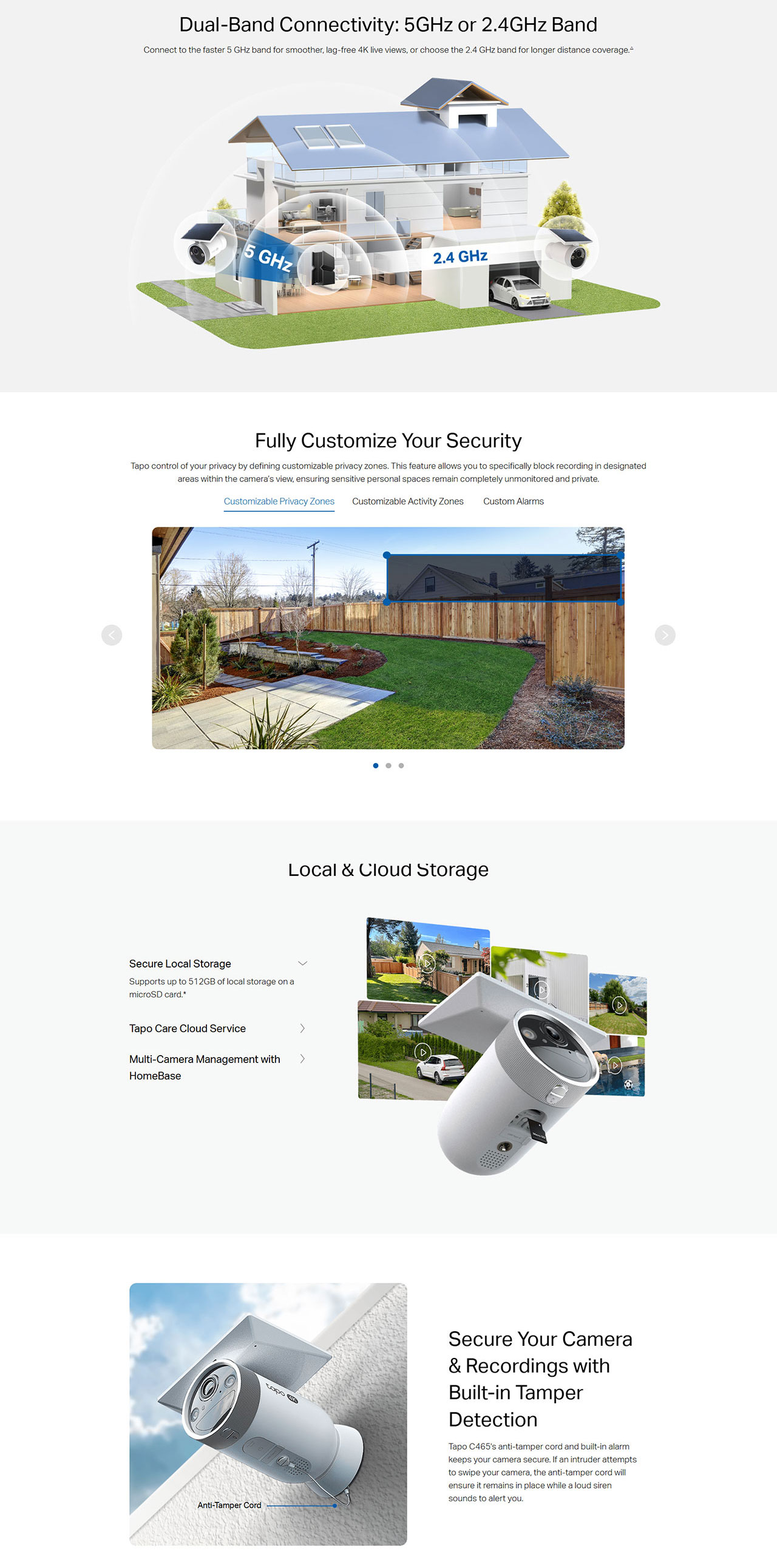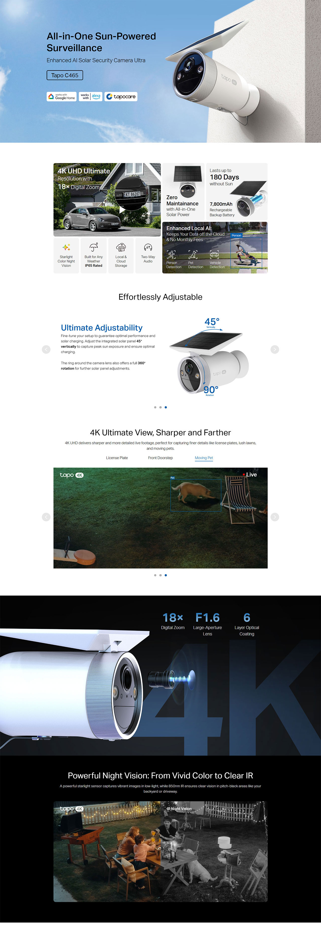 - Local & Cloud Storage: Select local on-device storage via microSD card (up to 512GB, sold separately) or opt for cloud storage with Tapo Care.