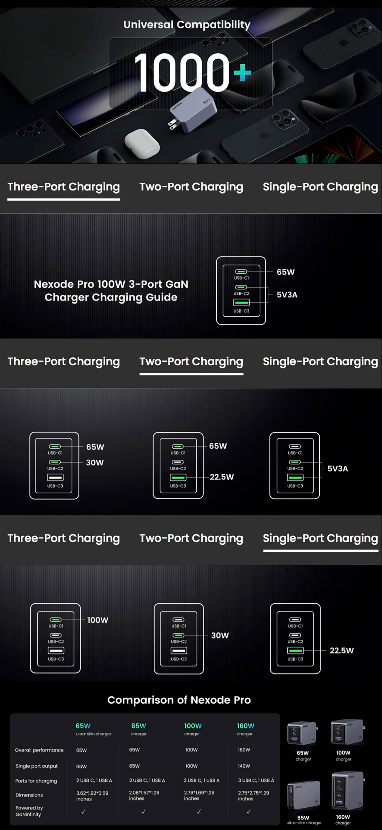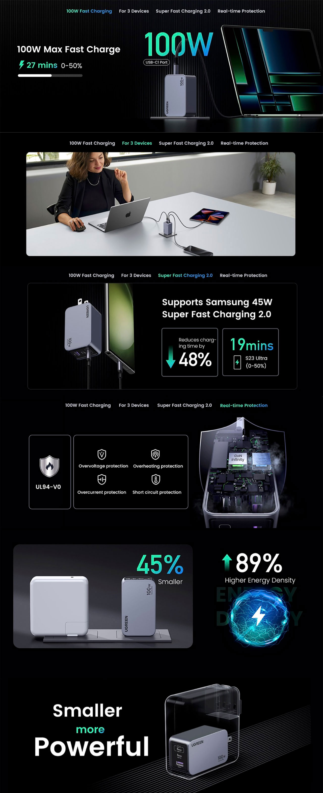 UGREEN 100W NEXODE PRO GAN ADAPTER - X757 (W/USB-C TO USB-C CABLE) 25875