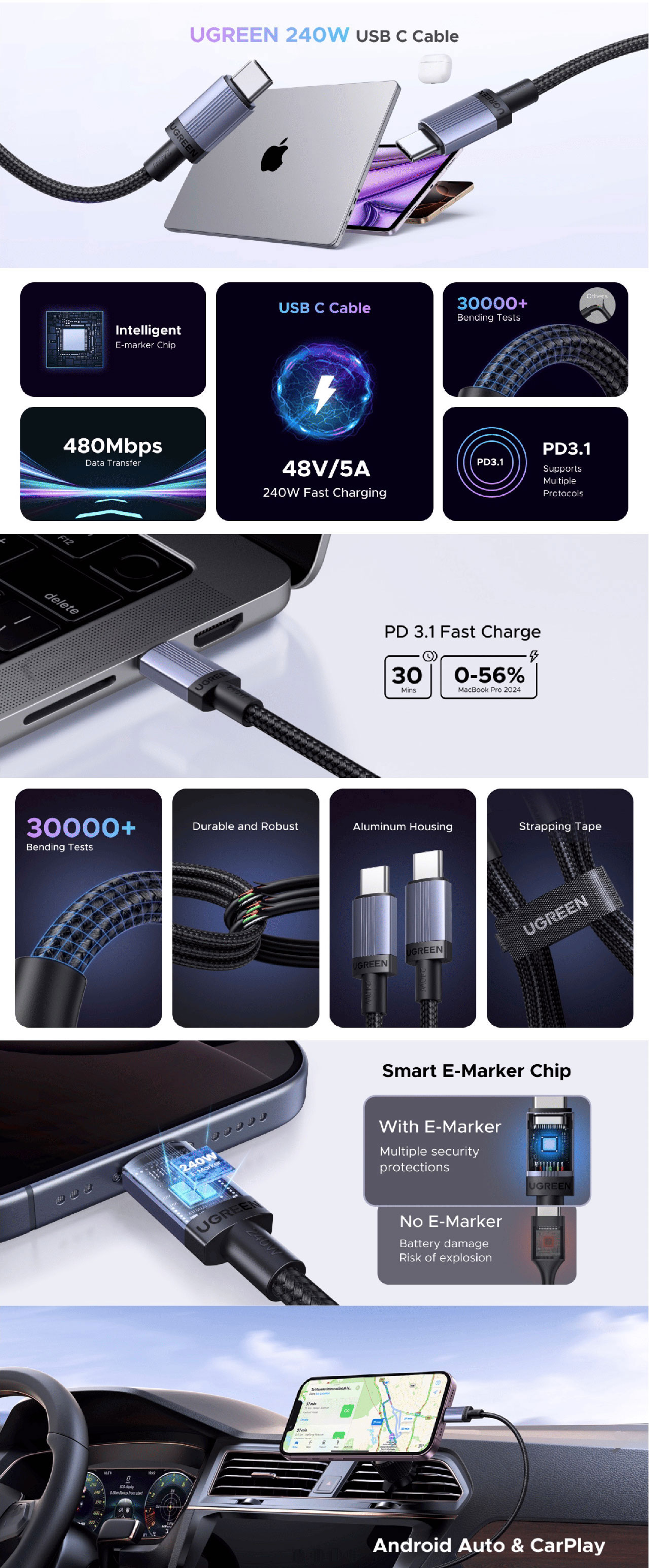 UGREEN 240W USB-C TO USB-C 1.0M CABLE - L532 65907