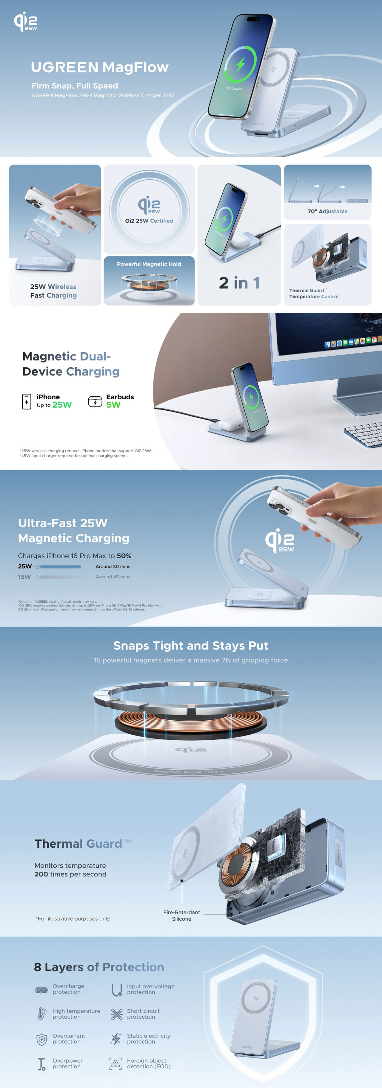 UGREEN 30W MAGFLOW 2-IN-1 WIRELESS MAGNETIC CHARGING STAND - W756 55963