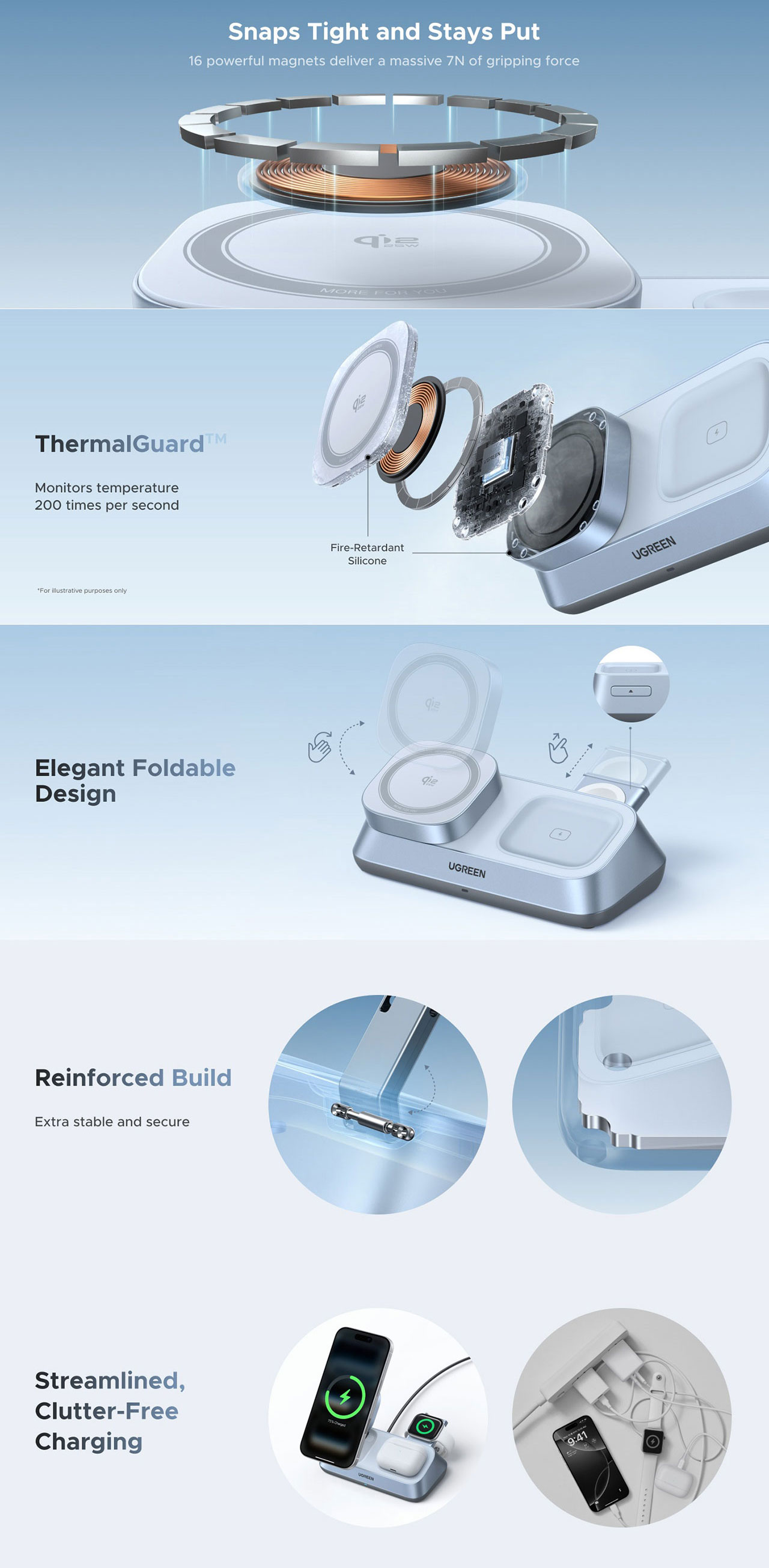 UGREEN 35W MAGFLOW 3-IN-1 WIRELESS MAGNETIC CHARGING STAND - W711 55678