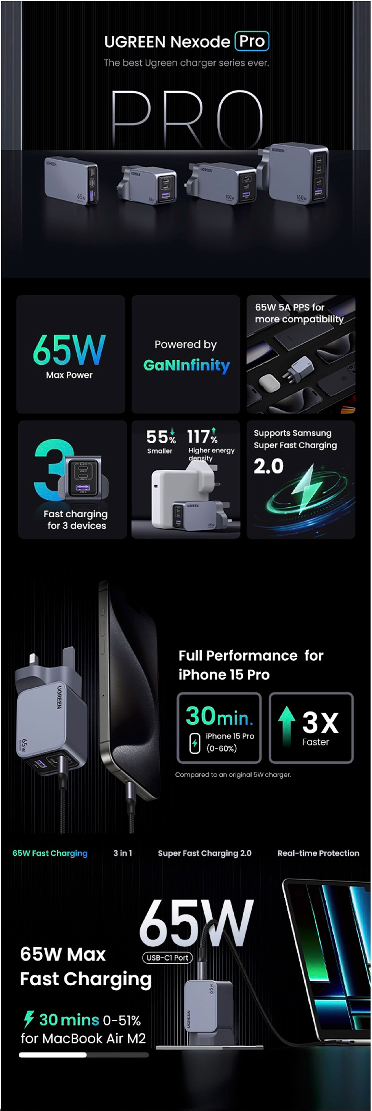 UGREEN 65W NEXODE PRO GAN ADAPTER W/CABLE - X755 25872