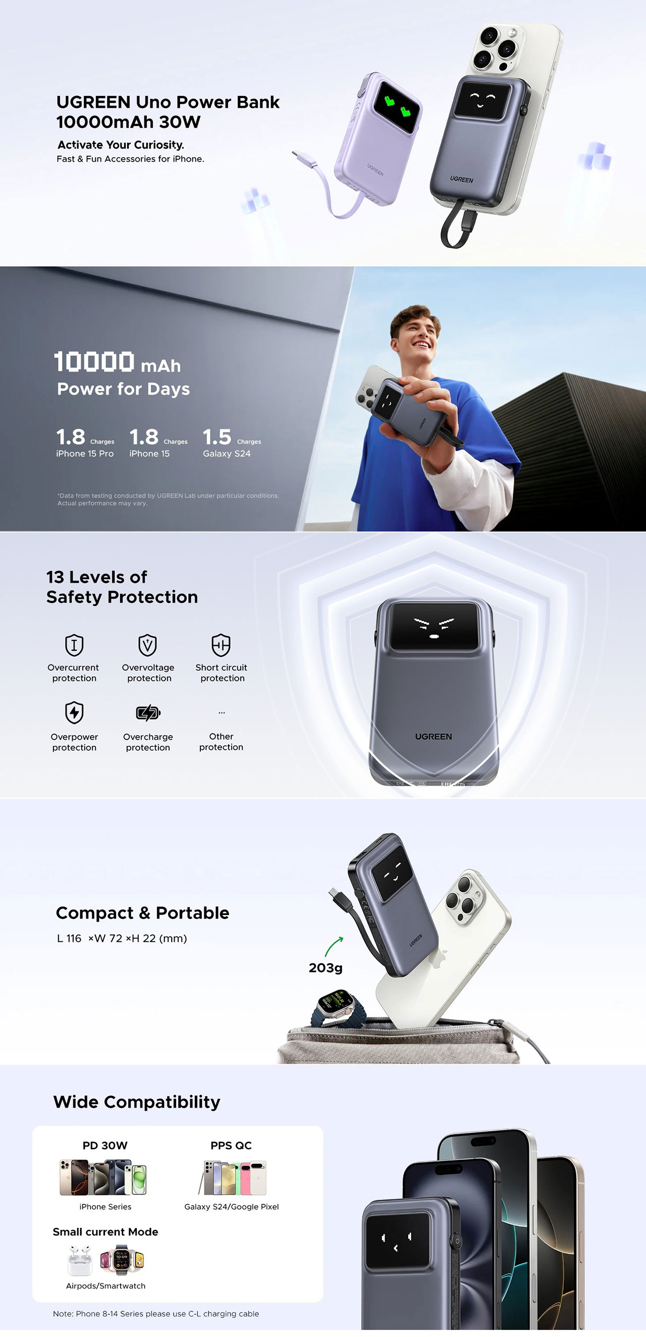 UGREEN UNO 10000MAH POWERBANK W/CABLE - PB511 - BLACK 35603B