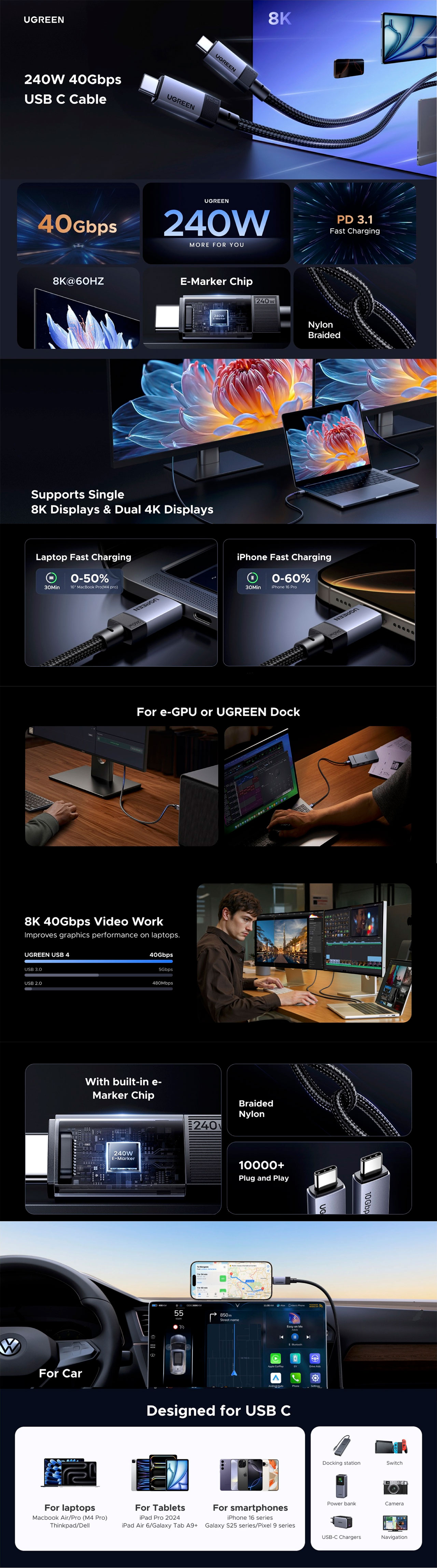 UGREEN USB-C TO USB-C 240W 1.0M CABLE - L705 - GRAY 65175
