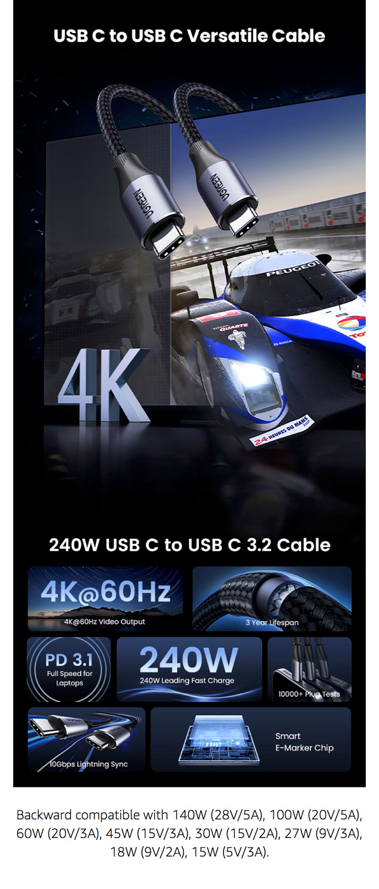 UGREEN USB-C TO USB-C 240W 1.0M CABLE - US355 80150
