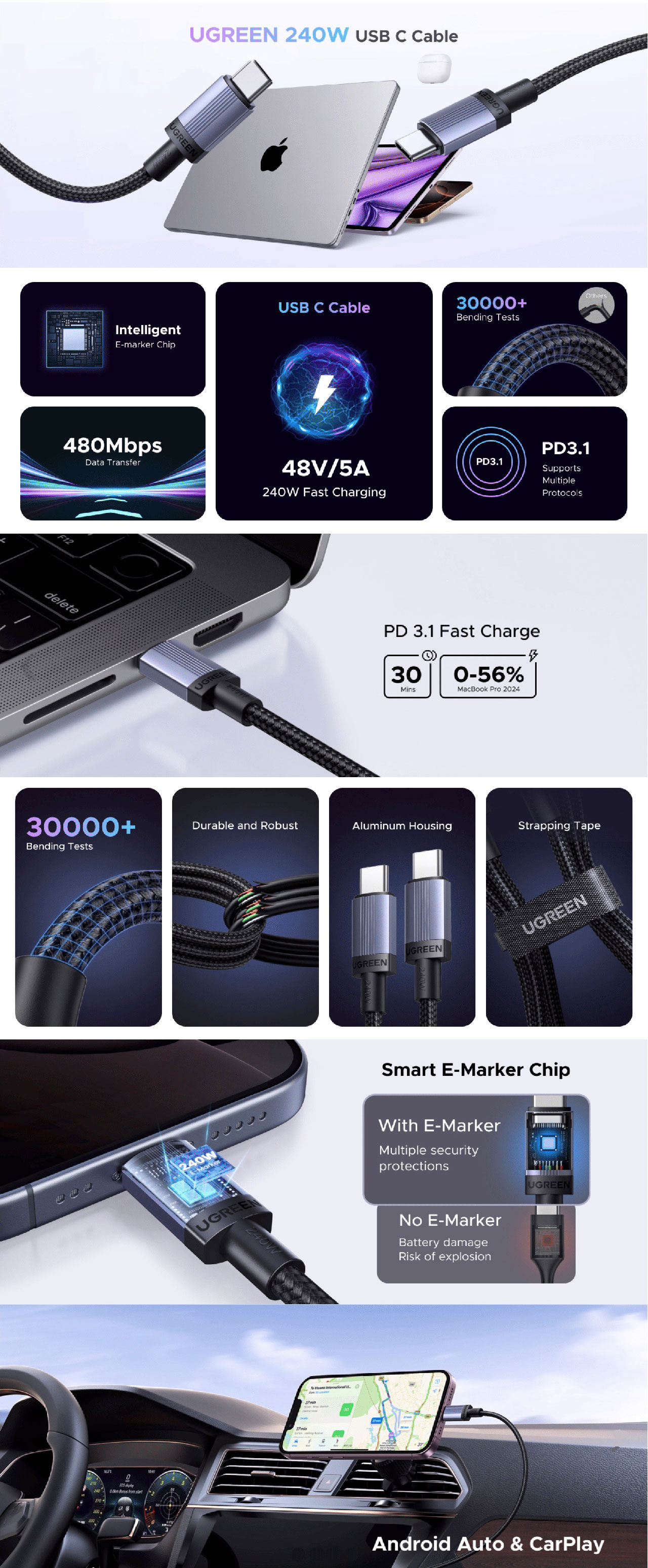 UGREEN USB-C TO USB-C 240W 3.0M CABLE - L532 65909