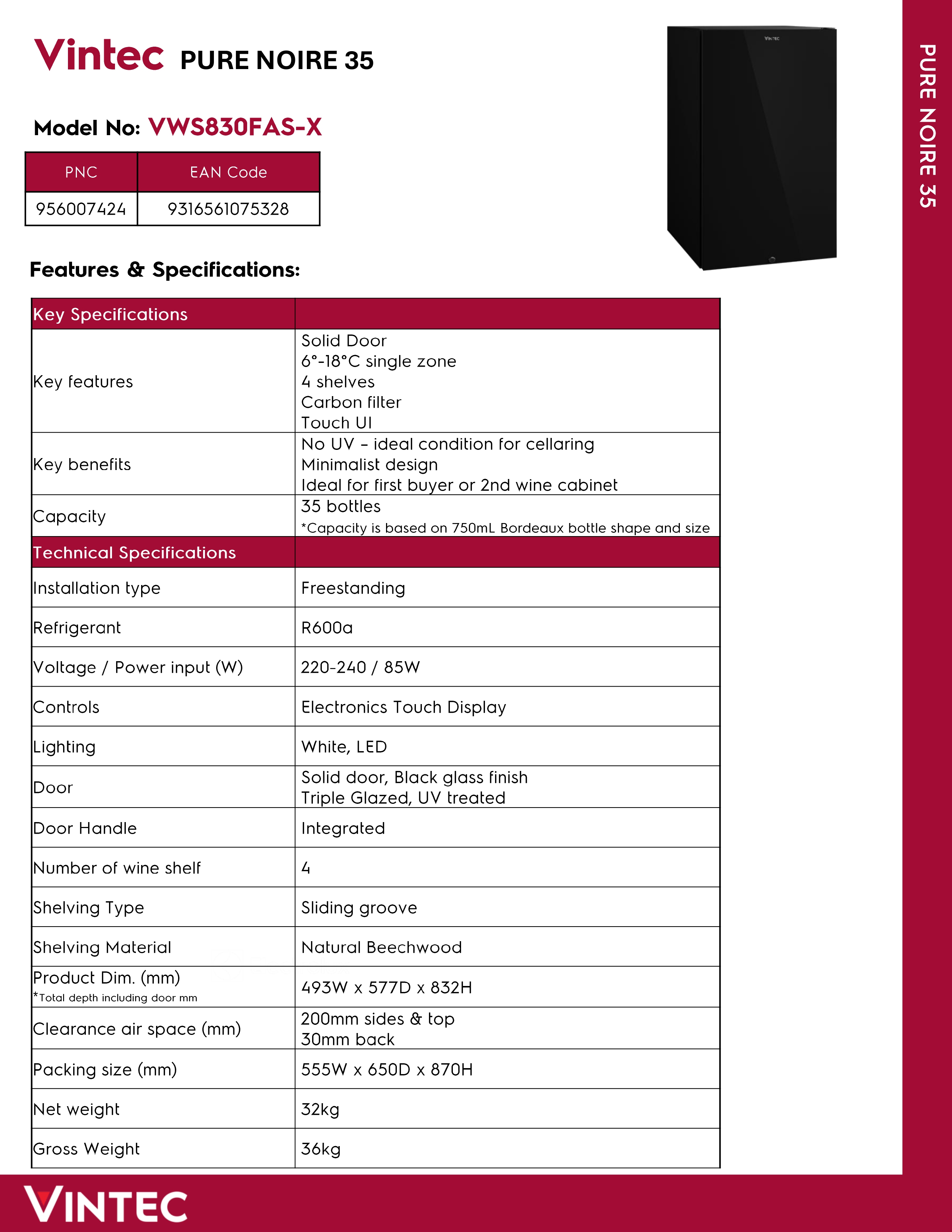 VINTEC WINE CELLAR VWS830FAS-X