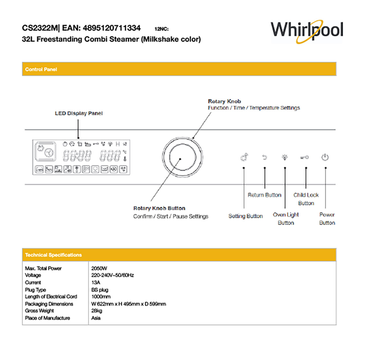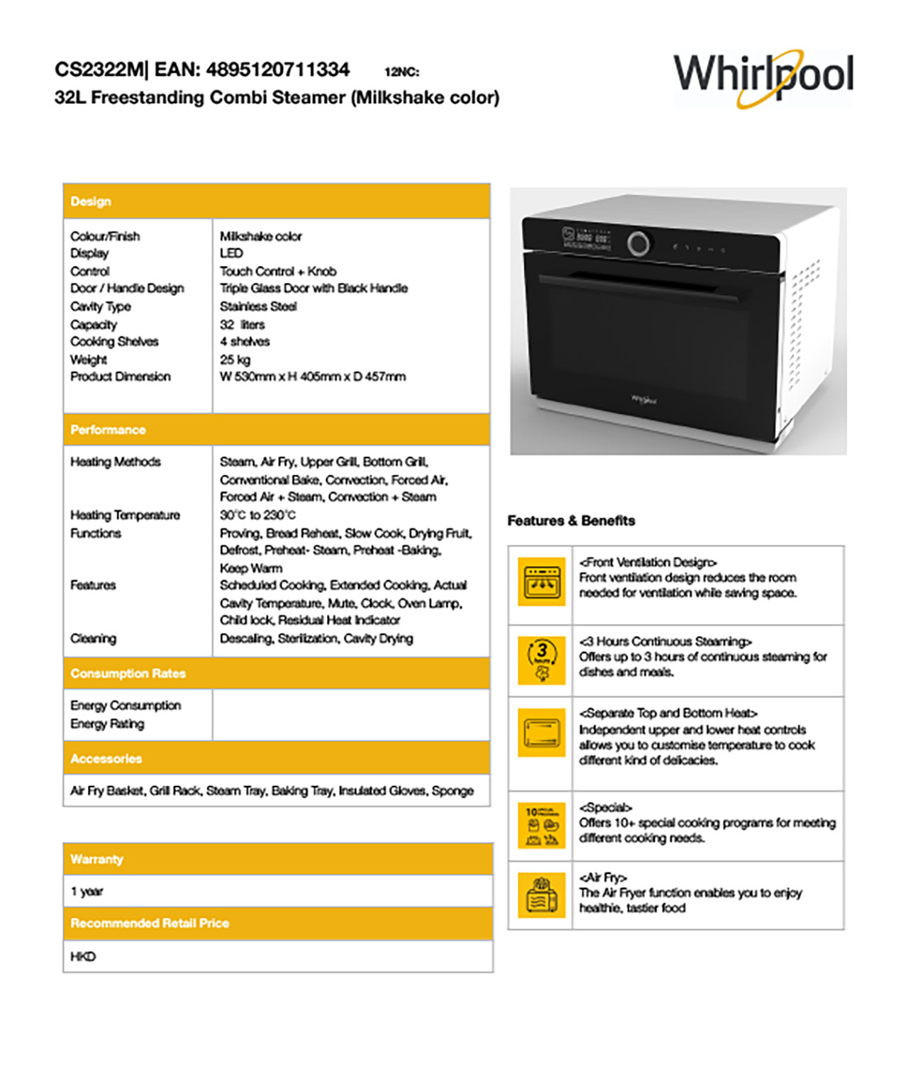 WHIRLPOOL COMBI STEAMER 32L CS2322M