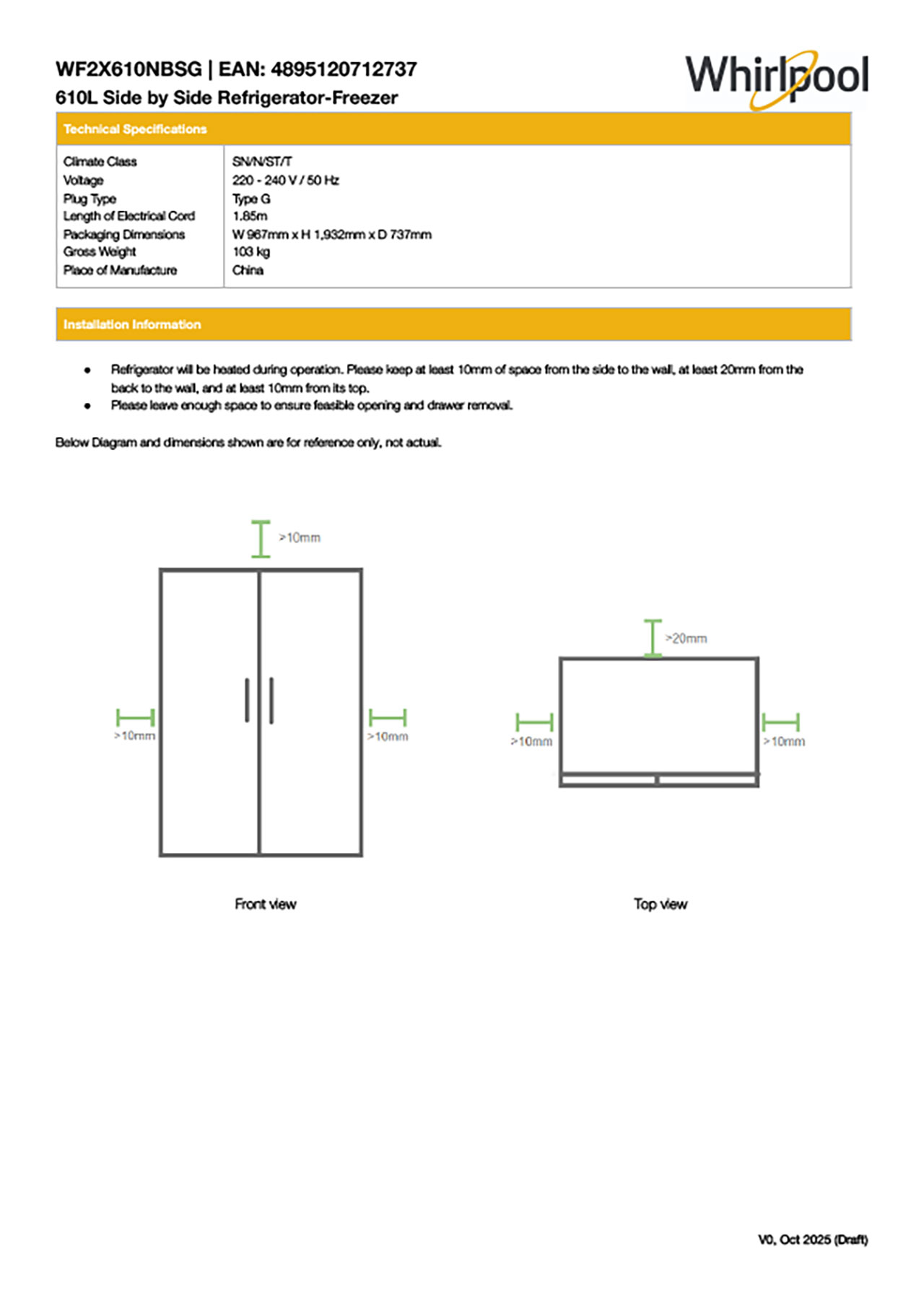 WHIRLPOOL SIDE BY SIDE FRIDGE WF2X610NBSG