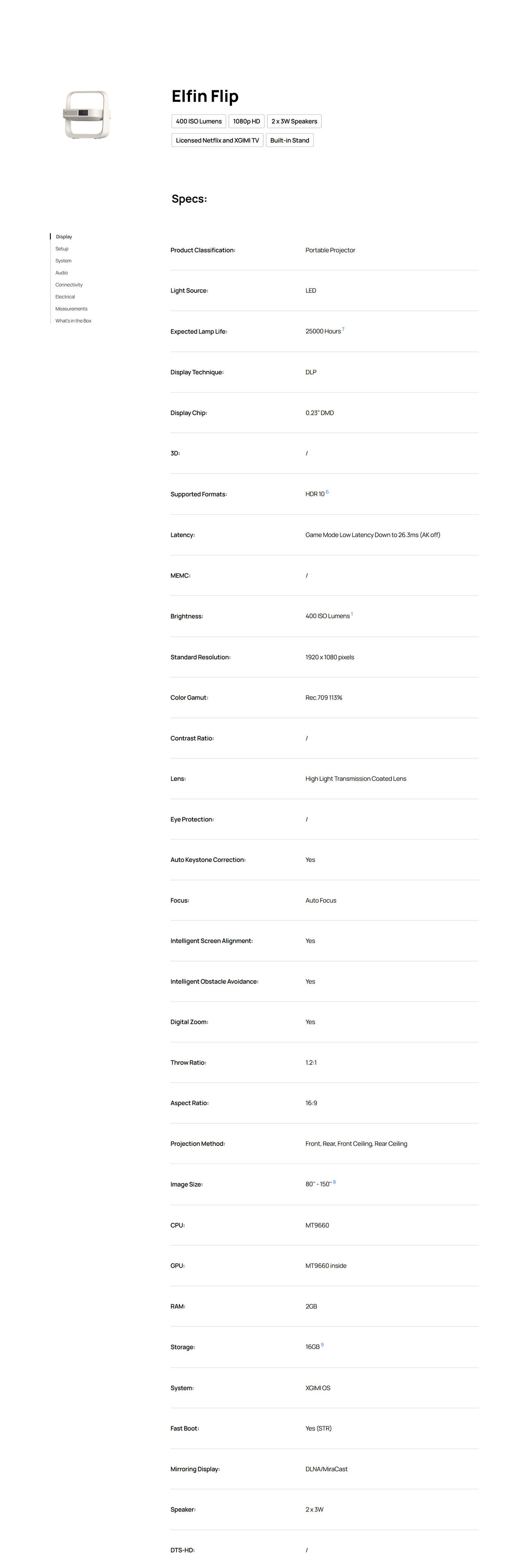 XGIMI HOME PROJECTOR ELFIN FLIP - GTV